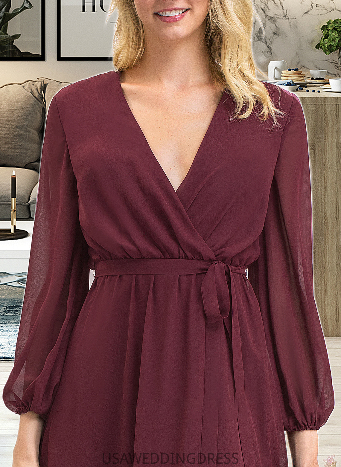 Winifred A-Line V-neck Floor-Length Chiffon Bridesmaid Dress With Ruffle Bow(s) Split Front DSP0012795