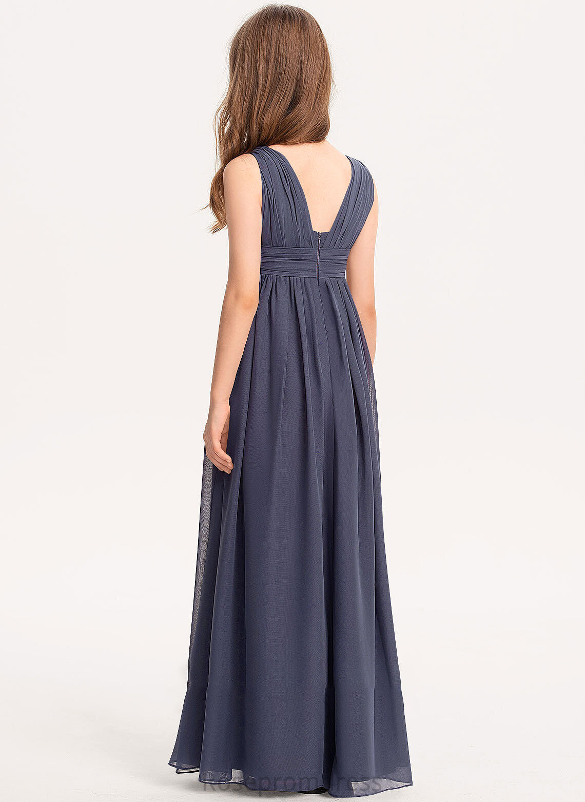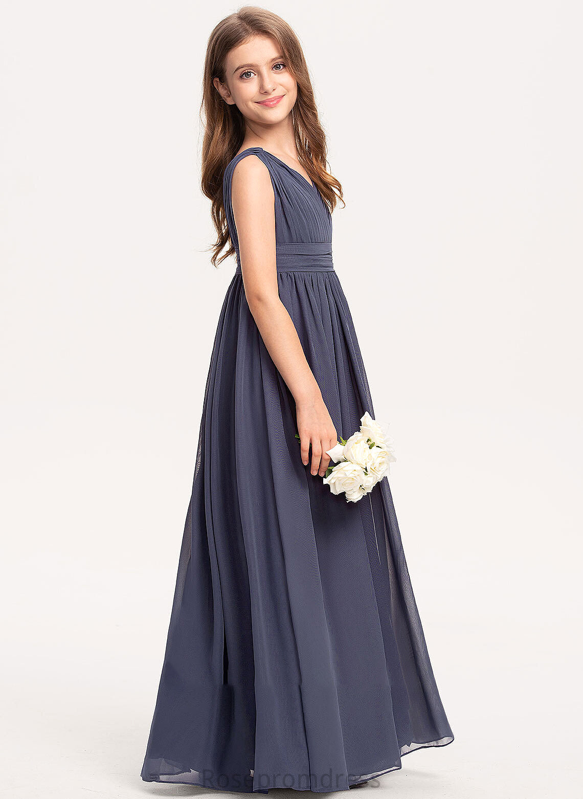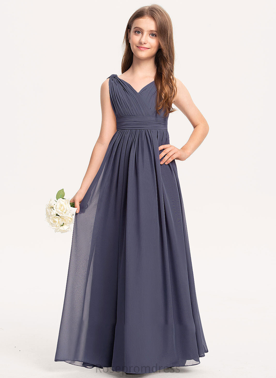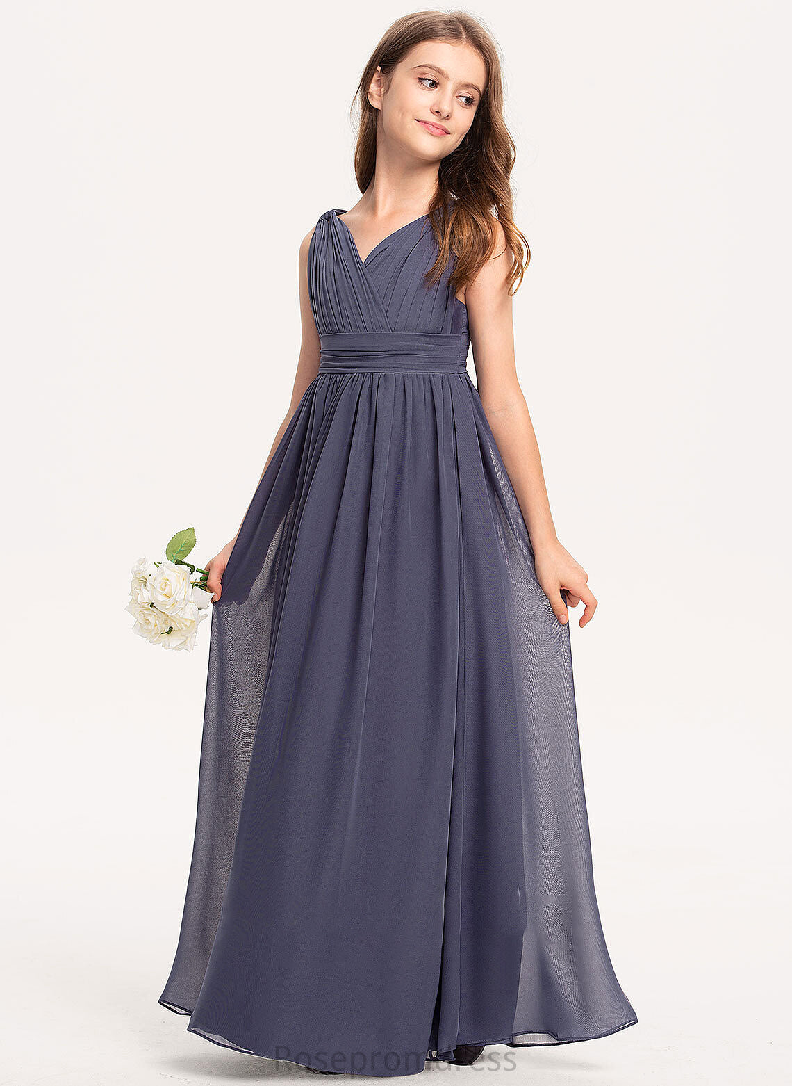 With A-Line Floor-Length V-neck Ruffle Junior Bridesmaid Dresses Chiffon Ashanti