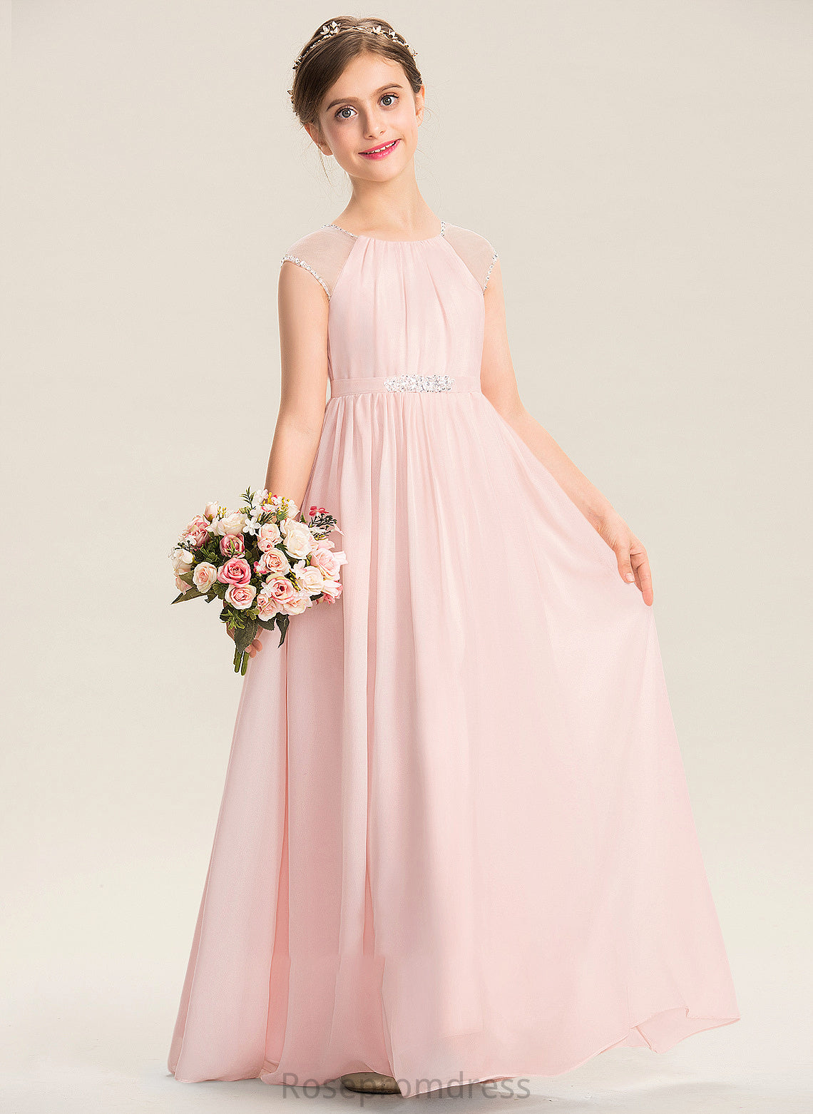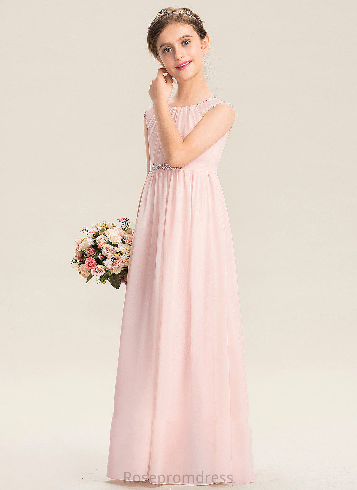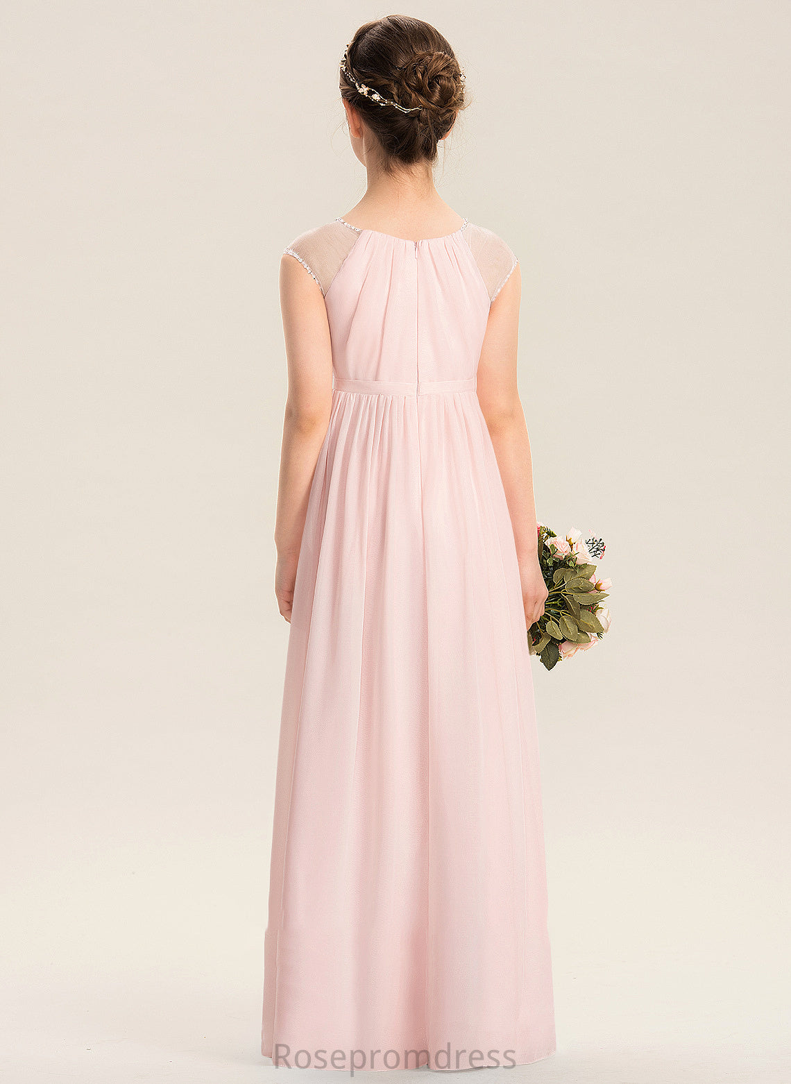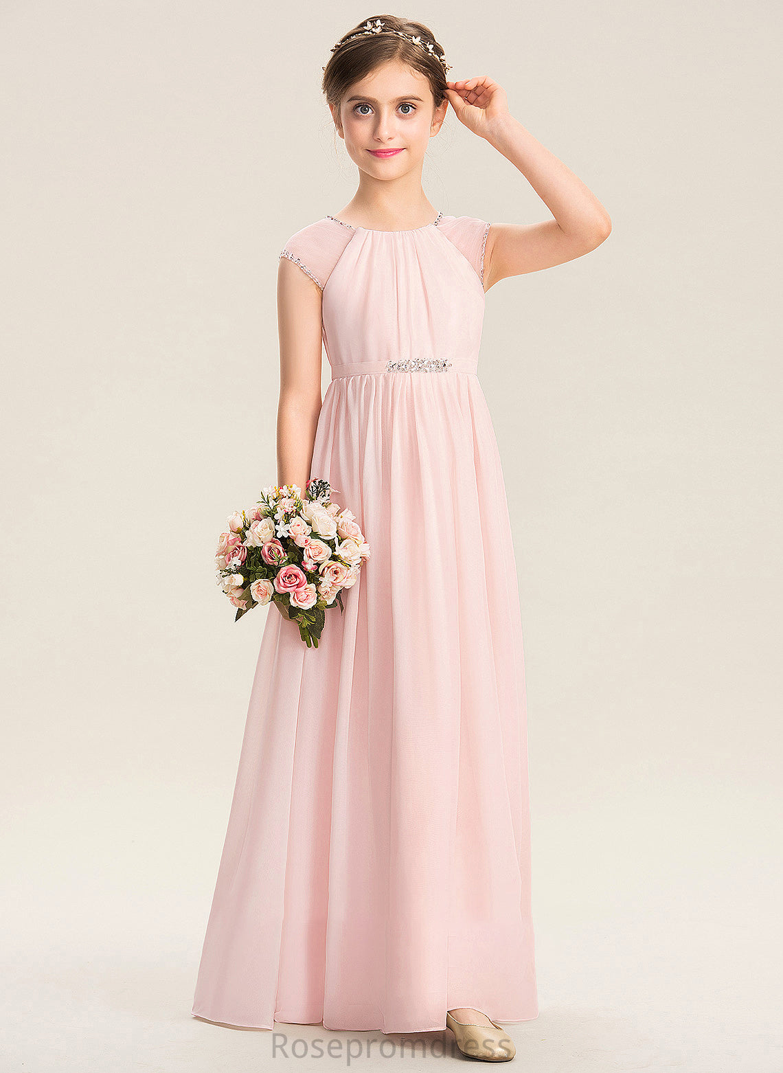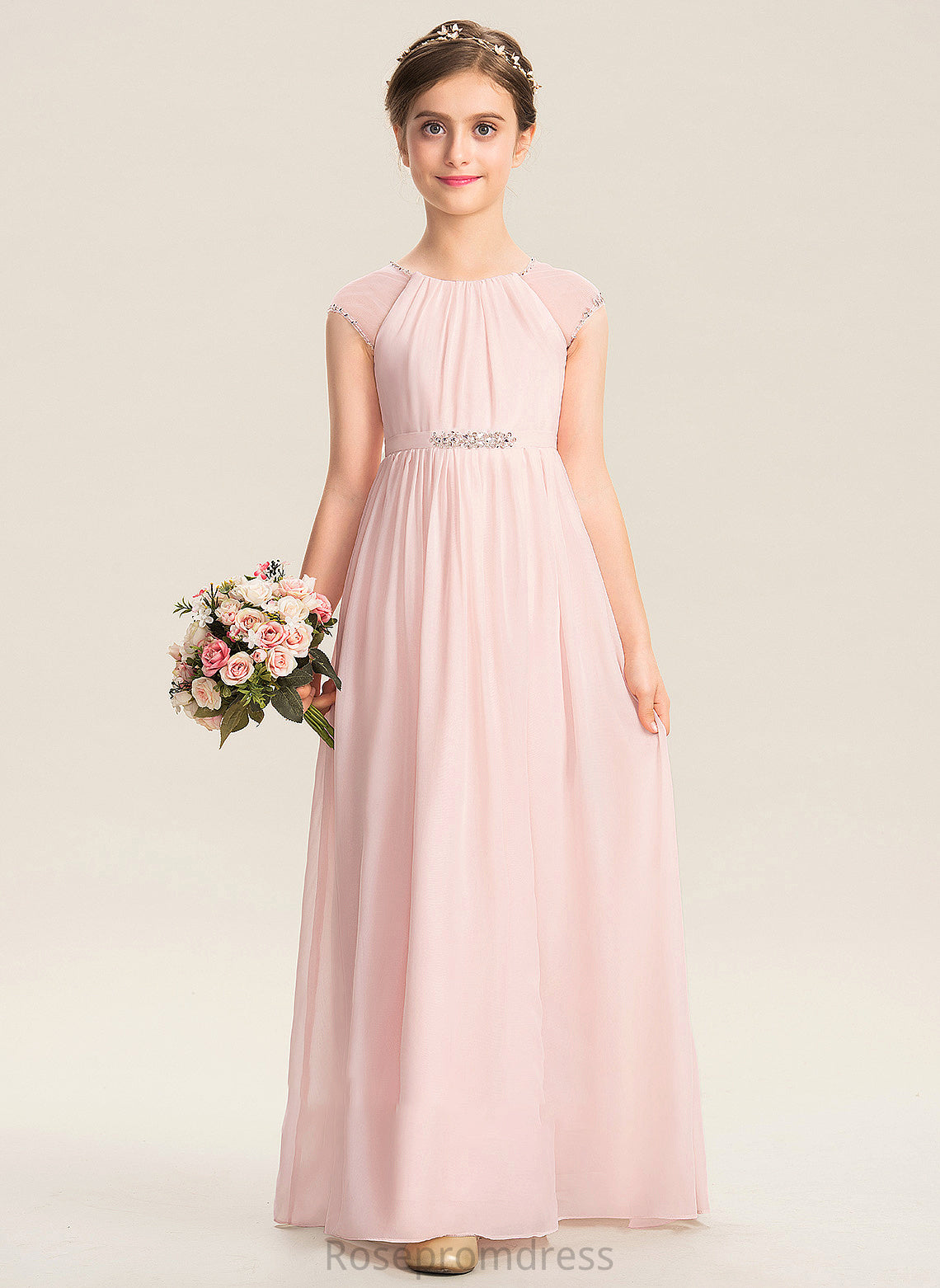 With A-Line Gracelyn Floor-Length Scoop Beading Neck Sequins Chiffon Junior Bridesmaid Dresses