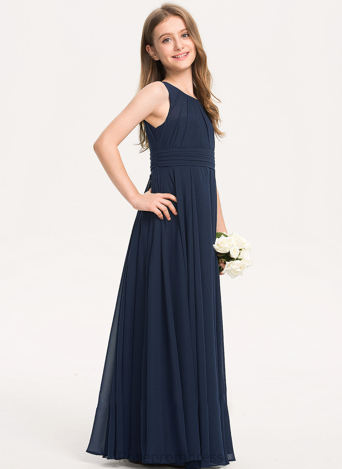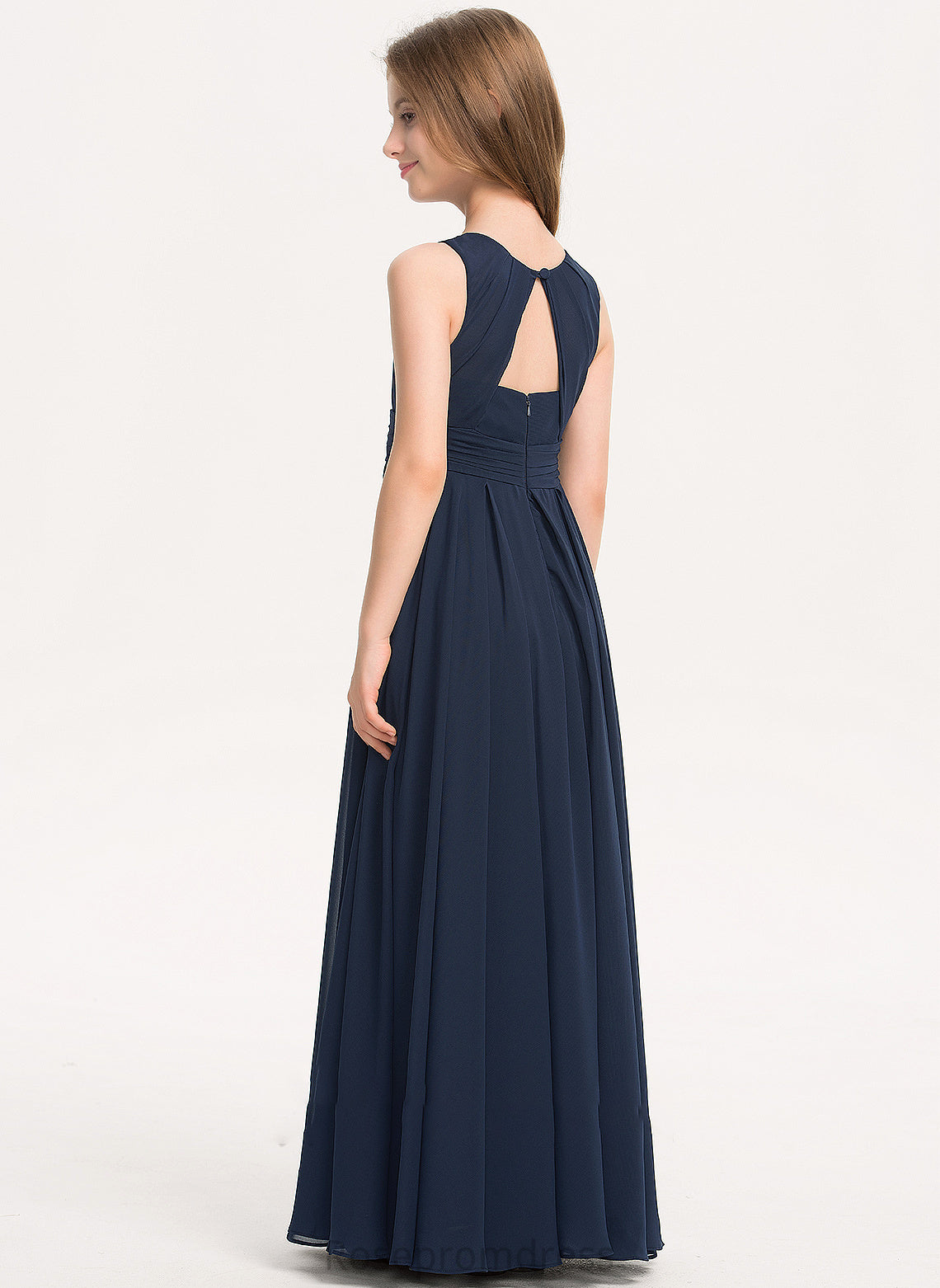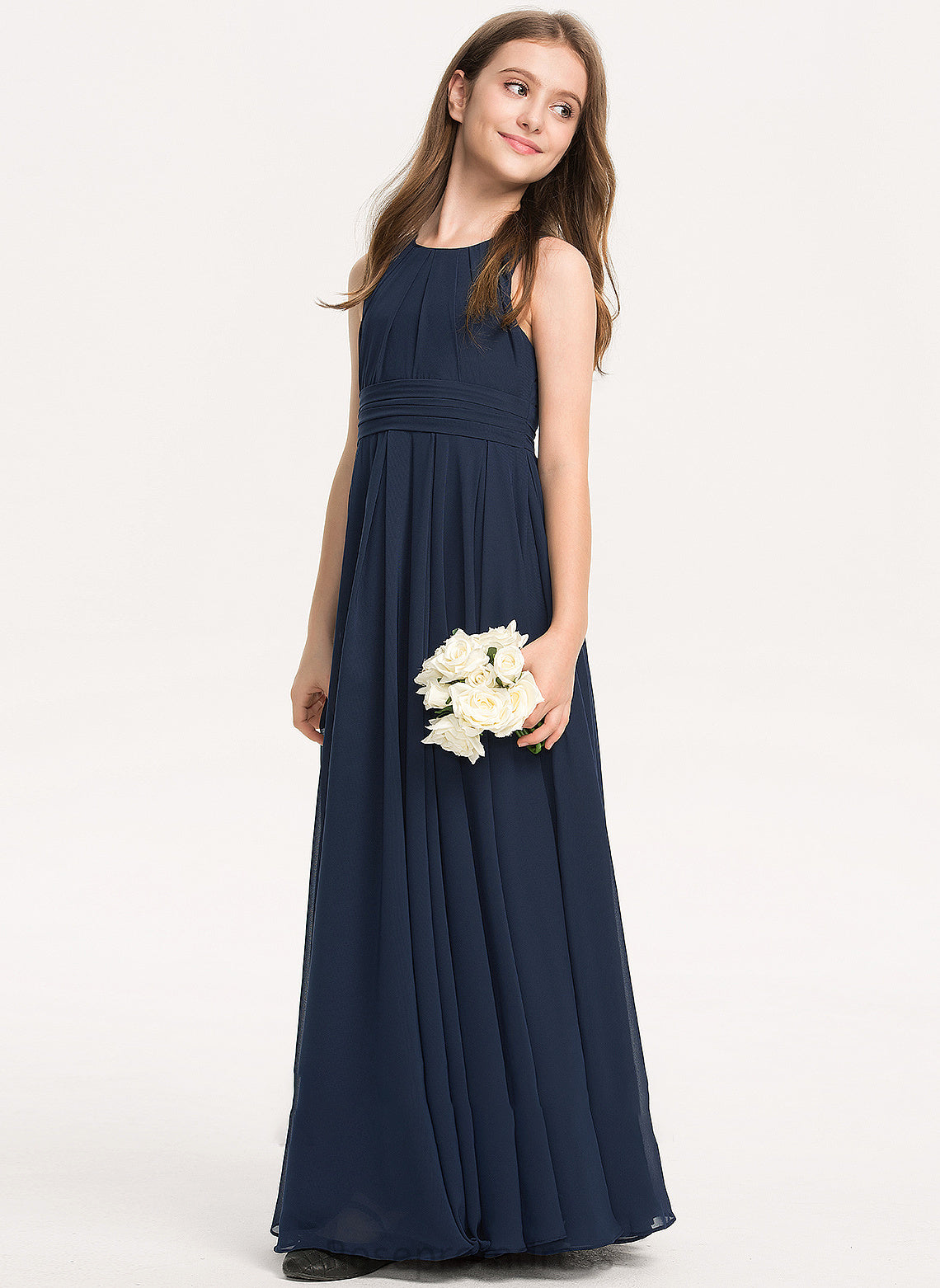 With A-Line Junior Bridesmaid Dresses Ruffle Chiffon Scoop Floor-Length Neck Maleah