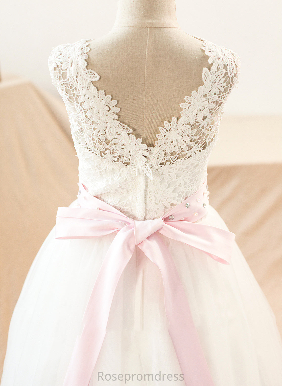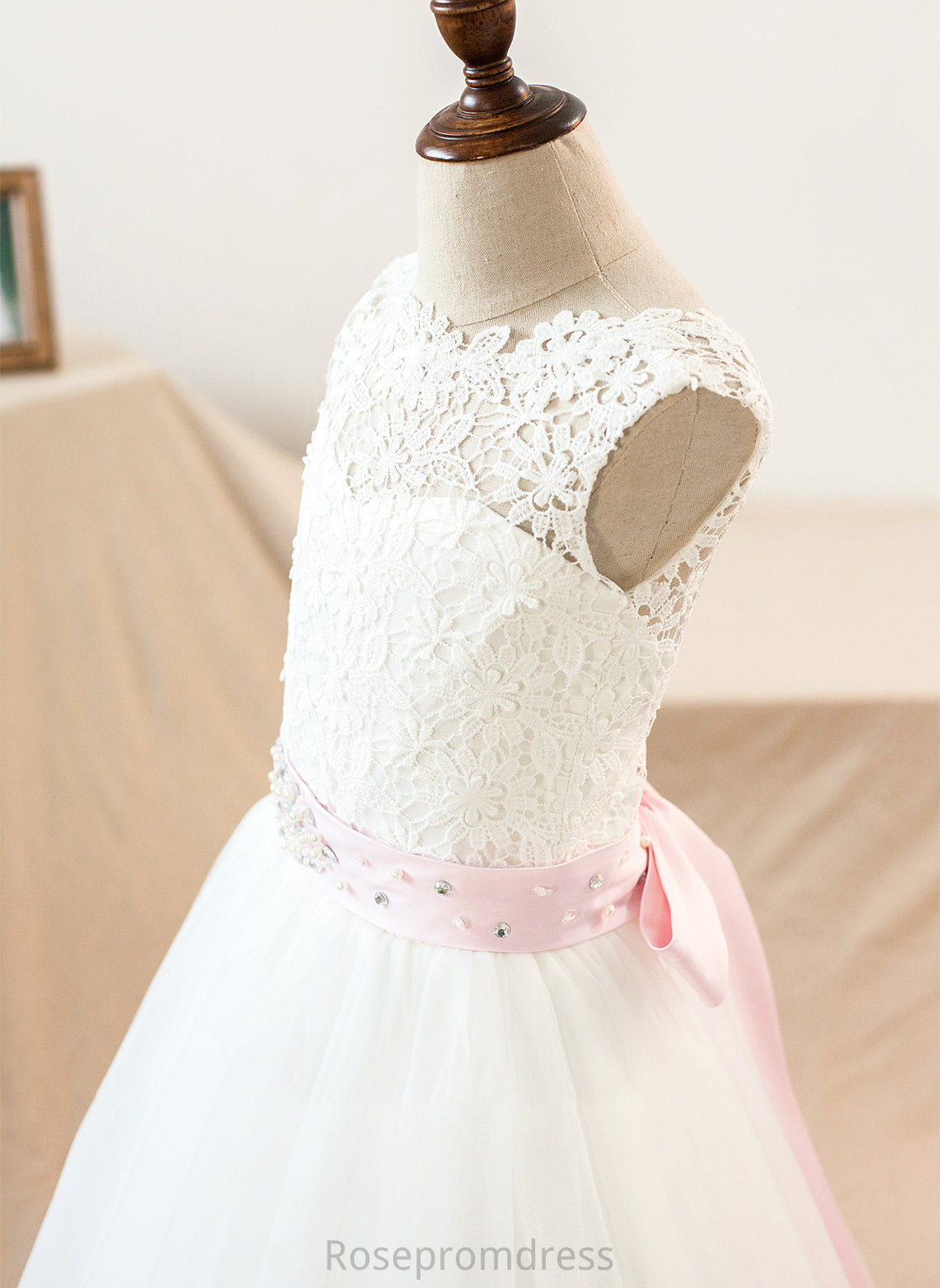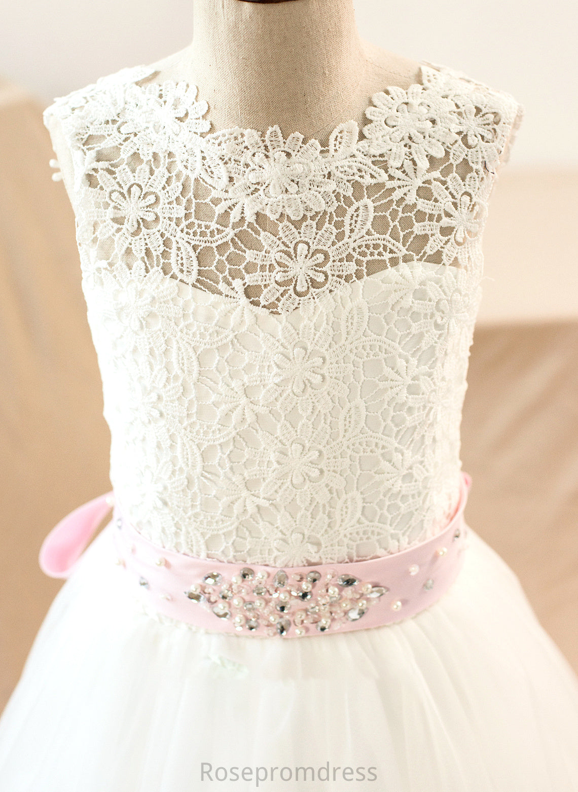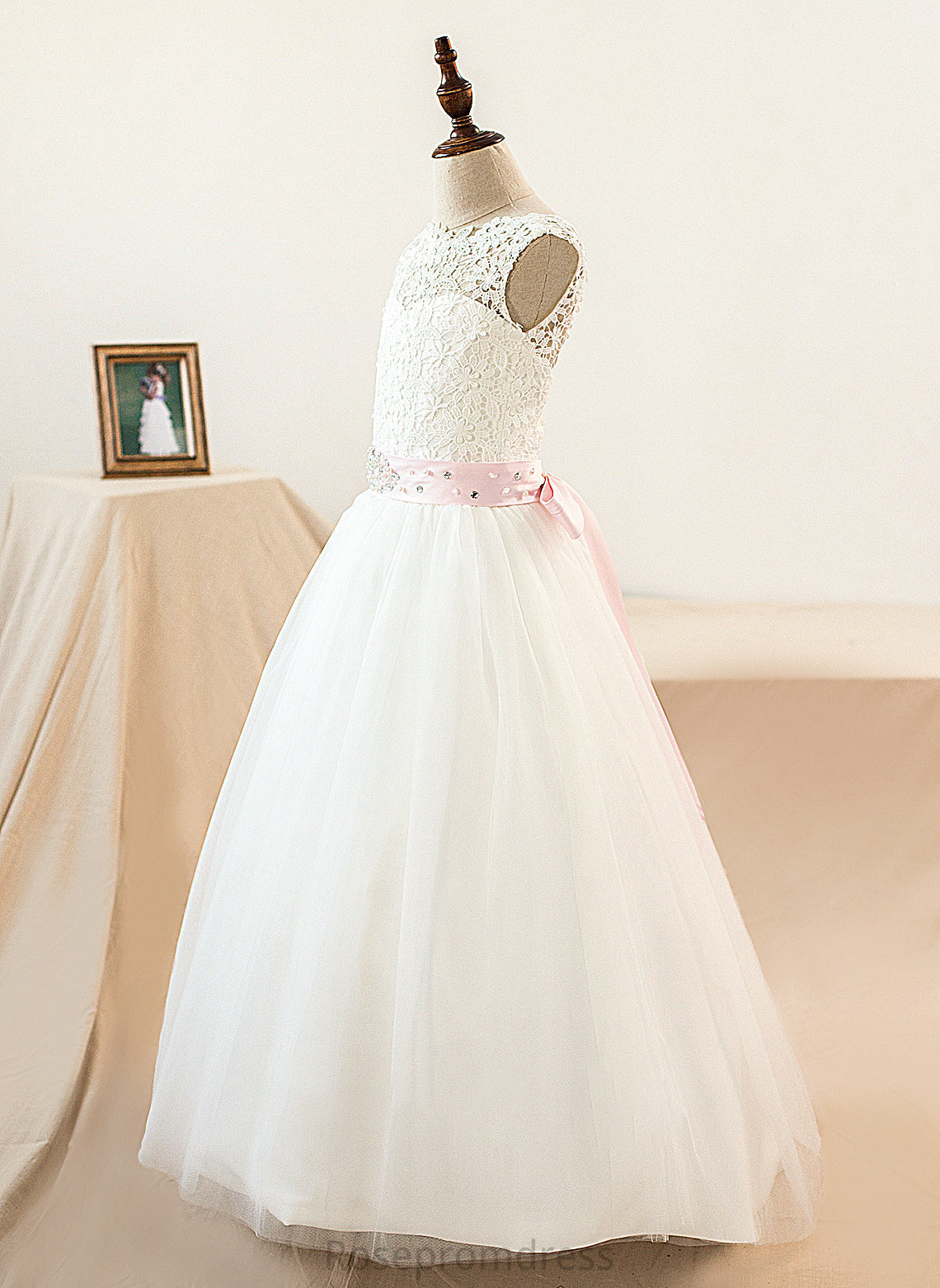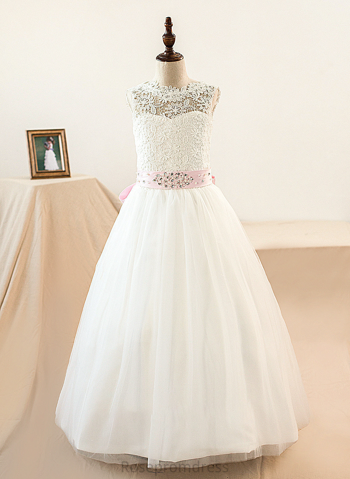 With Ball-Gown/Princess Floor-Length Addisyn Neck Bow(s) Junior Bridesmaid Dresses Scoop Beading Sash Tulle