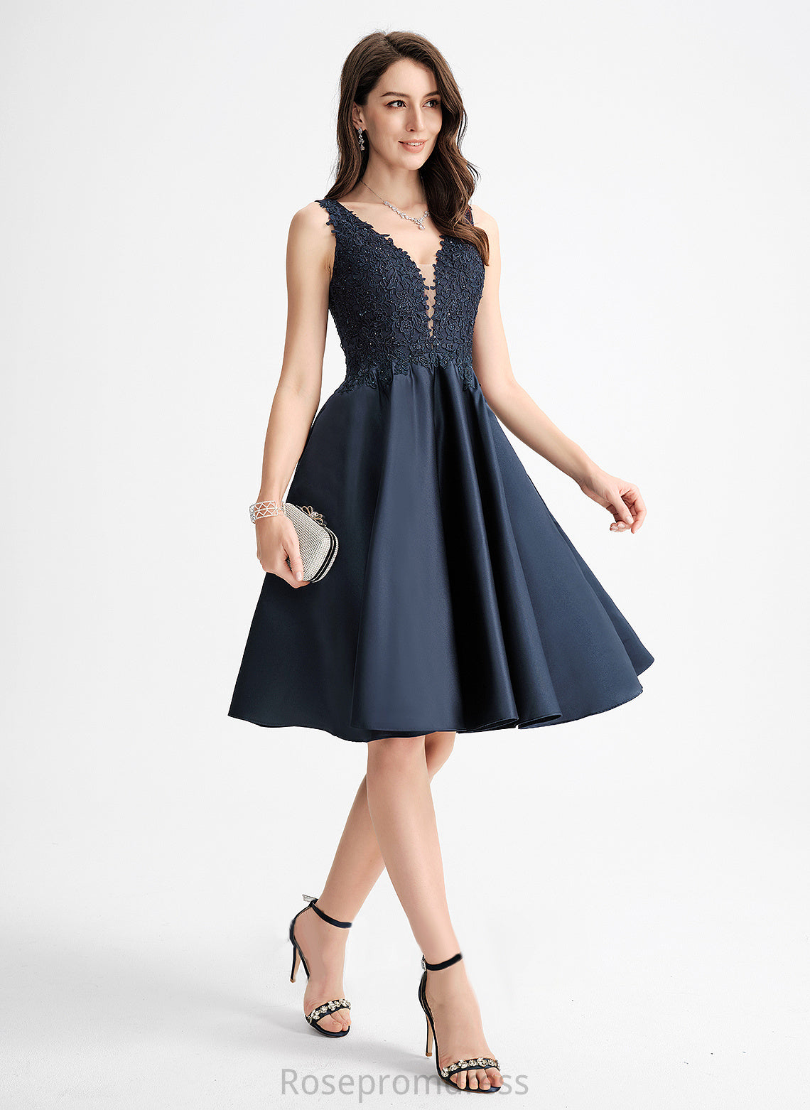 With Beading A-Line Knee-Length Homecoming Homecoming Dresses Lace Satin V-neck Dress Elva