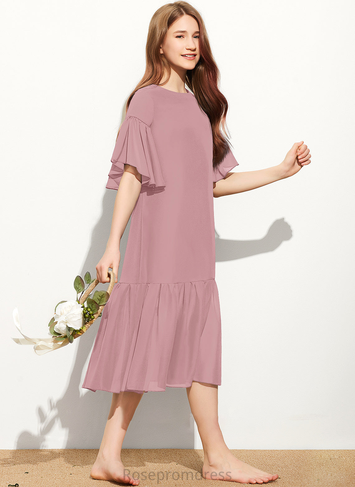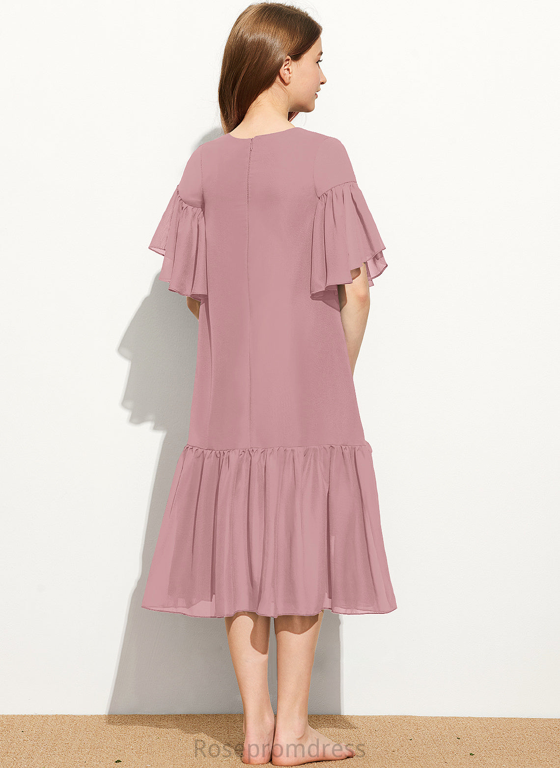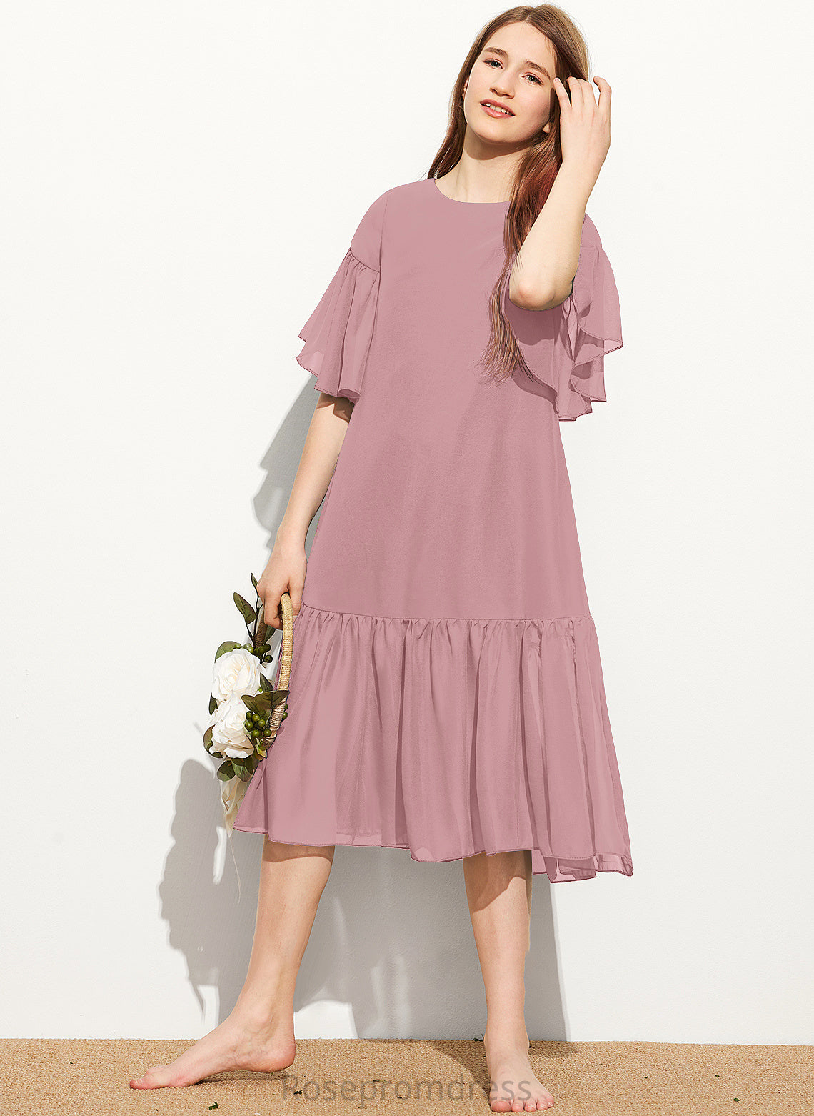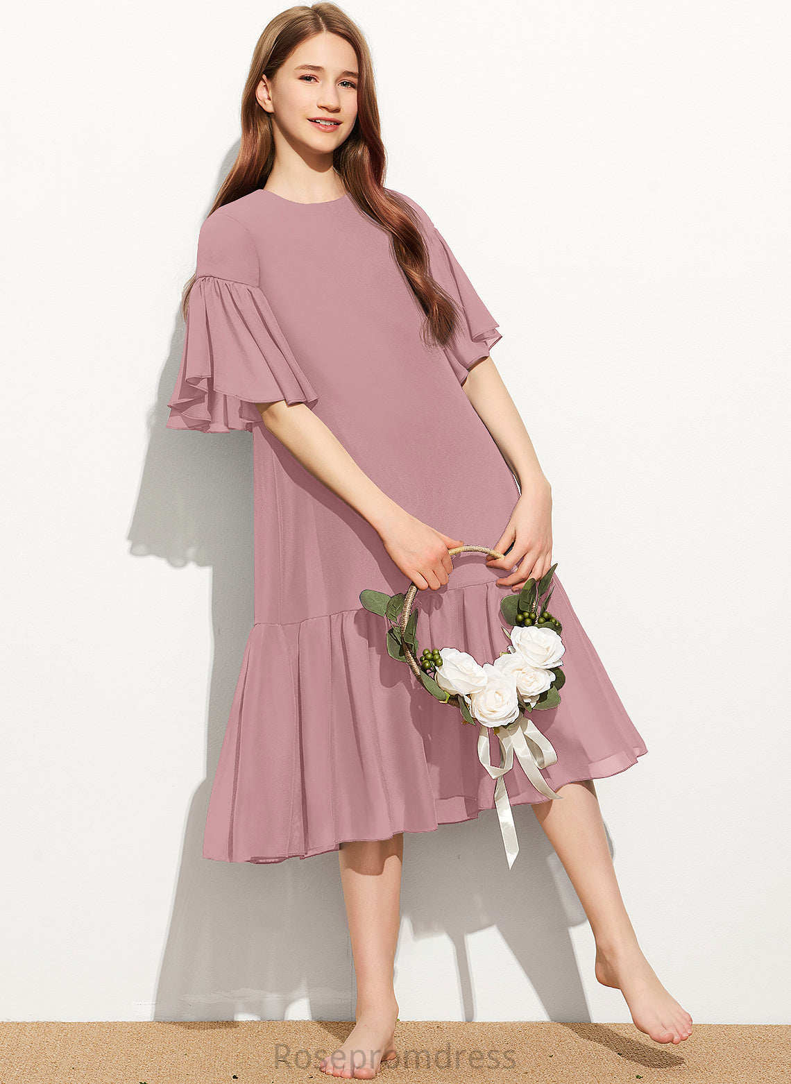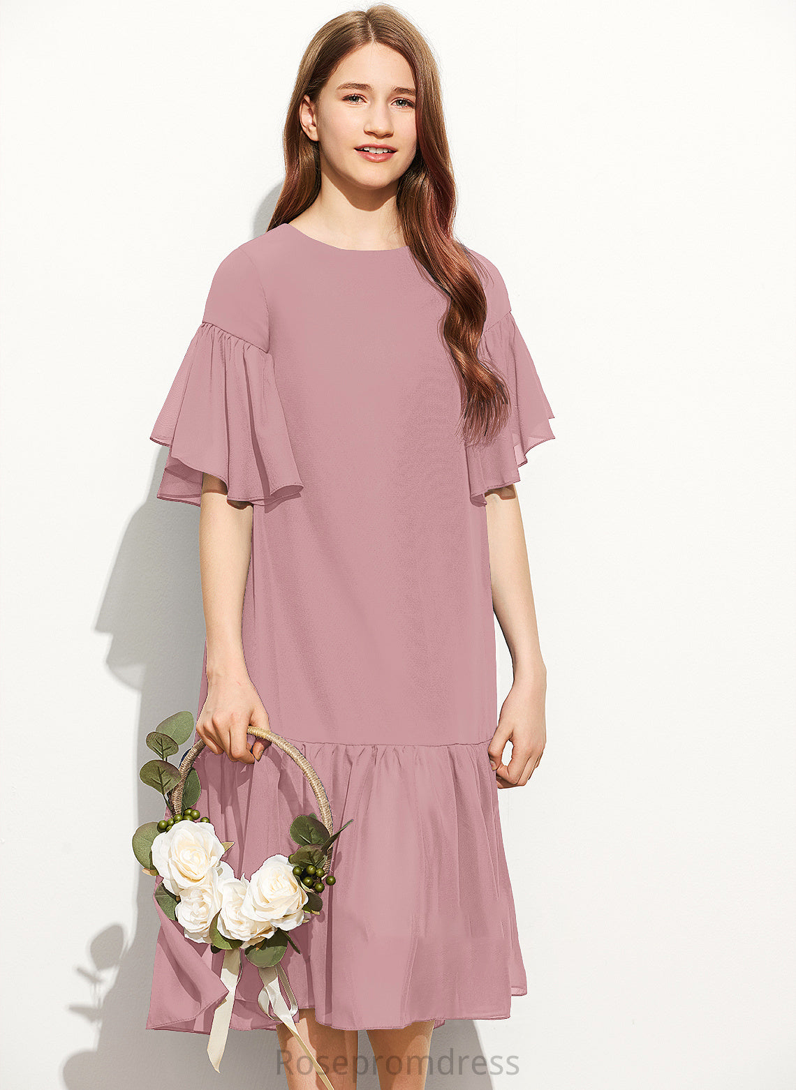 With Cascading Junior Bridesmaid Dresses A-Line Ruffles Scoop Mariah Neck Knee-Length Chiffon