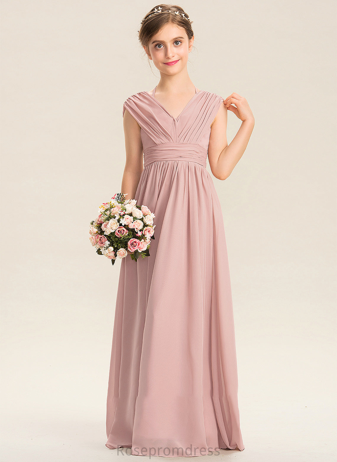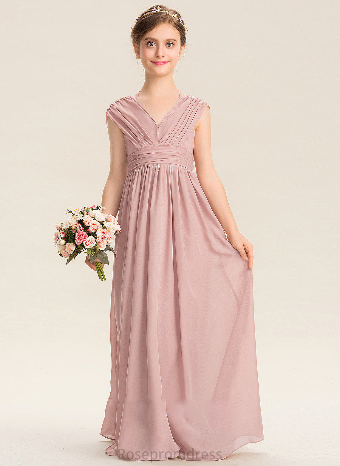 With Junior Bridesmaid Dresses Marisa Bow(s) V-neck Ruffle Chiffon A-Line Floor-Length