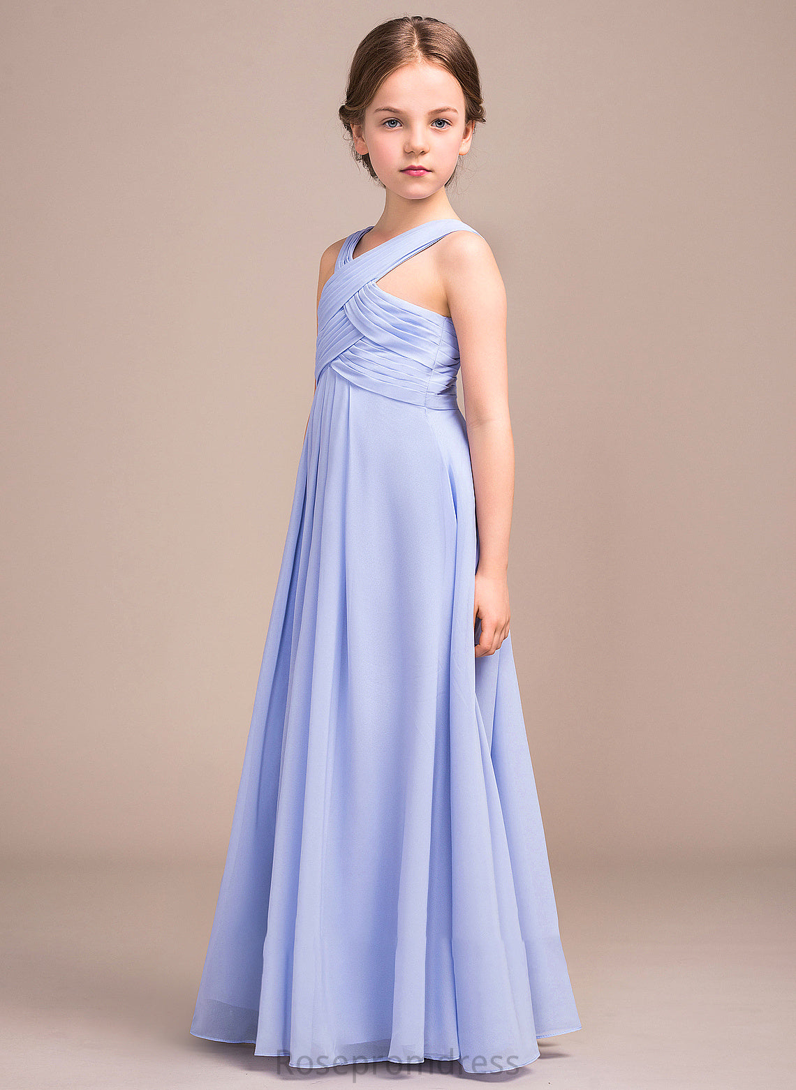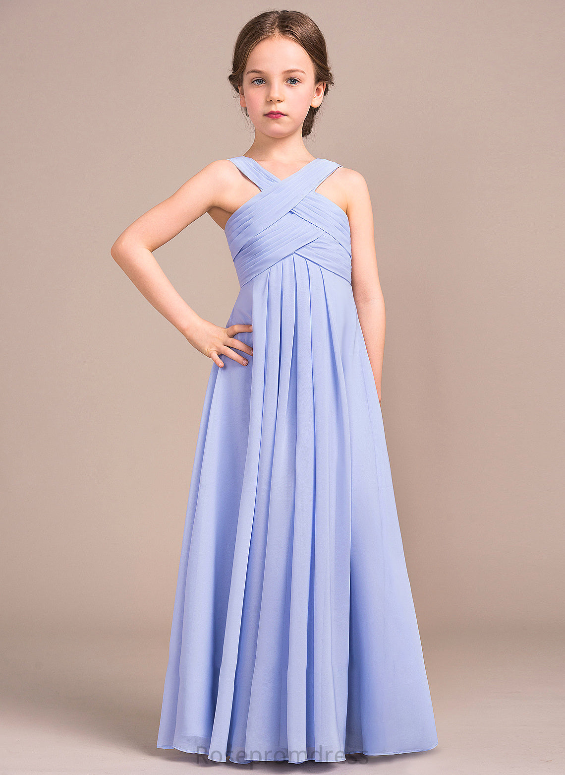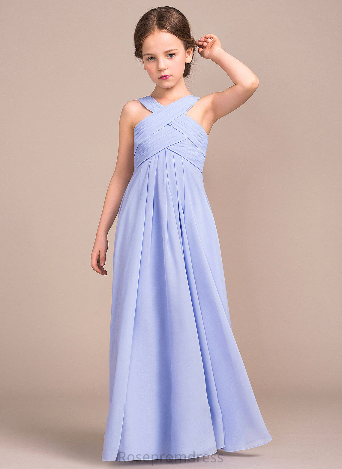With Junior Bridesmaid Dresses V-neck A-Line Floor-Length Ruffle Chiffon Lexie