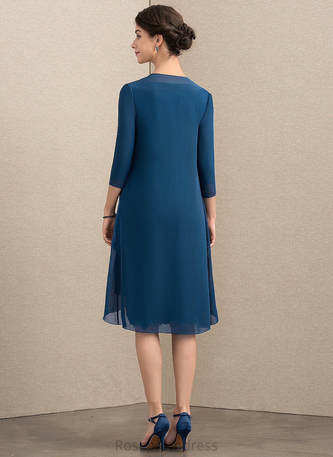 With Knee-Length the Mother of the Bride Dresses Sheath/Column V-neck Bride Lace Mother Daniela Chiffon Dress of Brooch Crystal