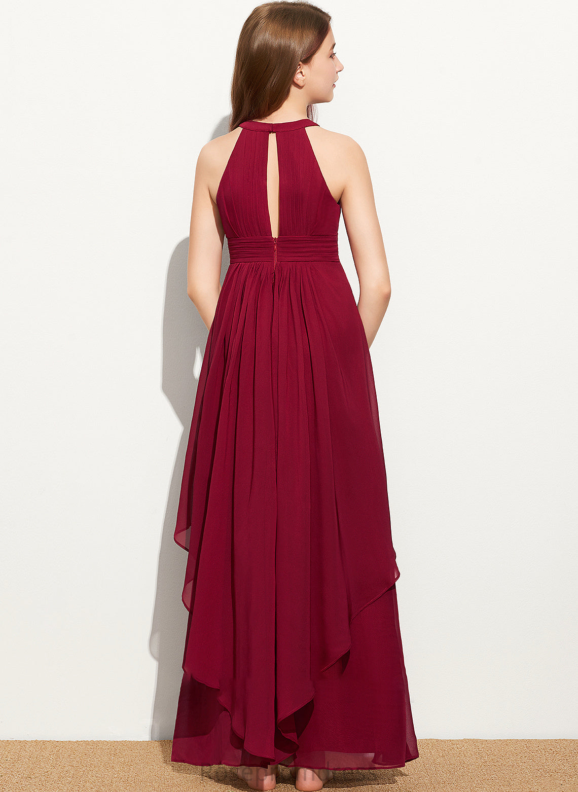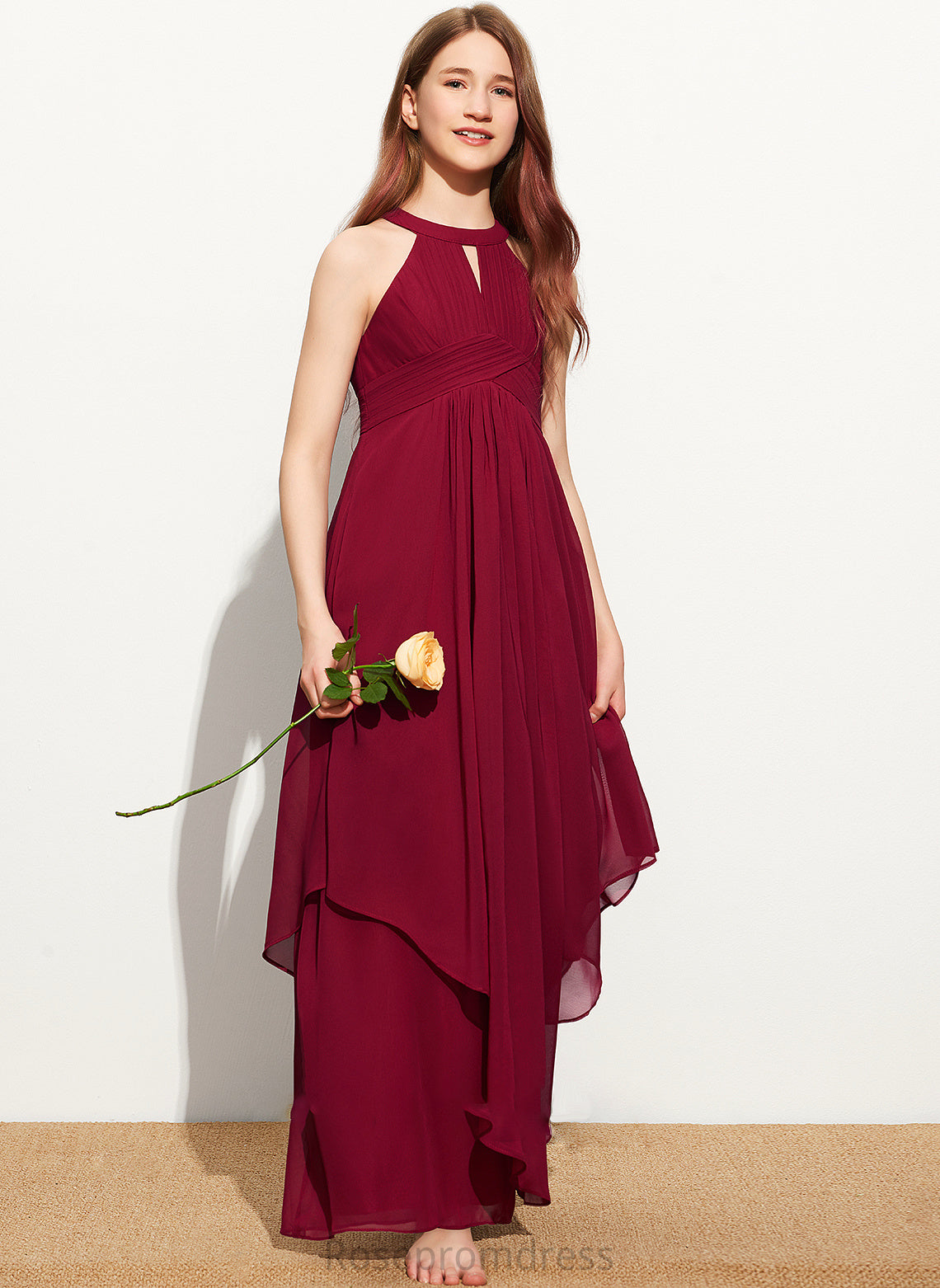 With Neck Ruffle Chiffon Scoop Nicole Junior Bridesmaid Dresses A-Line Floor-Length