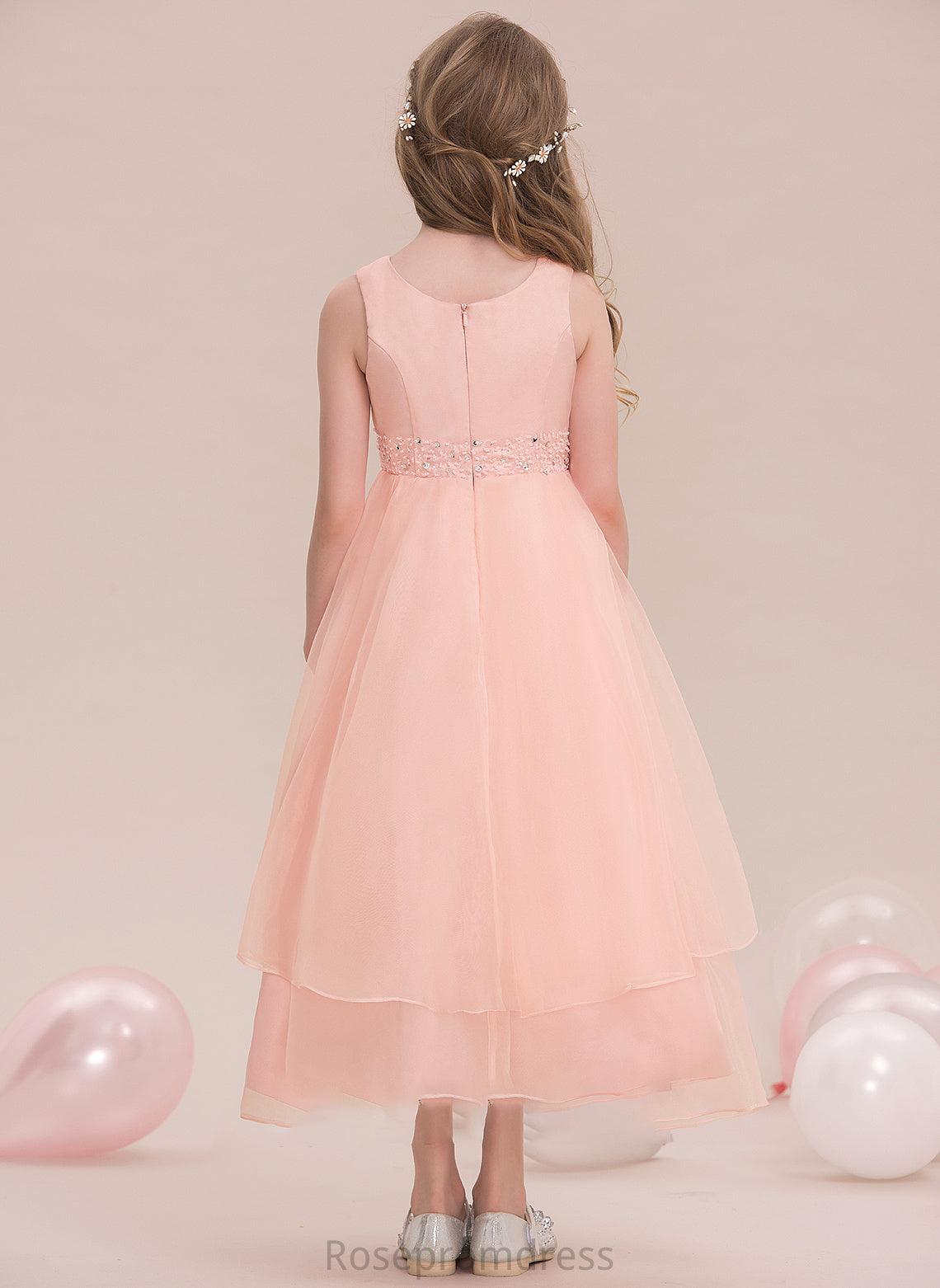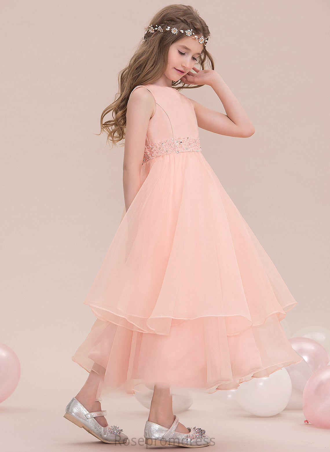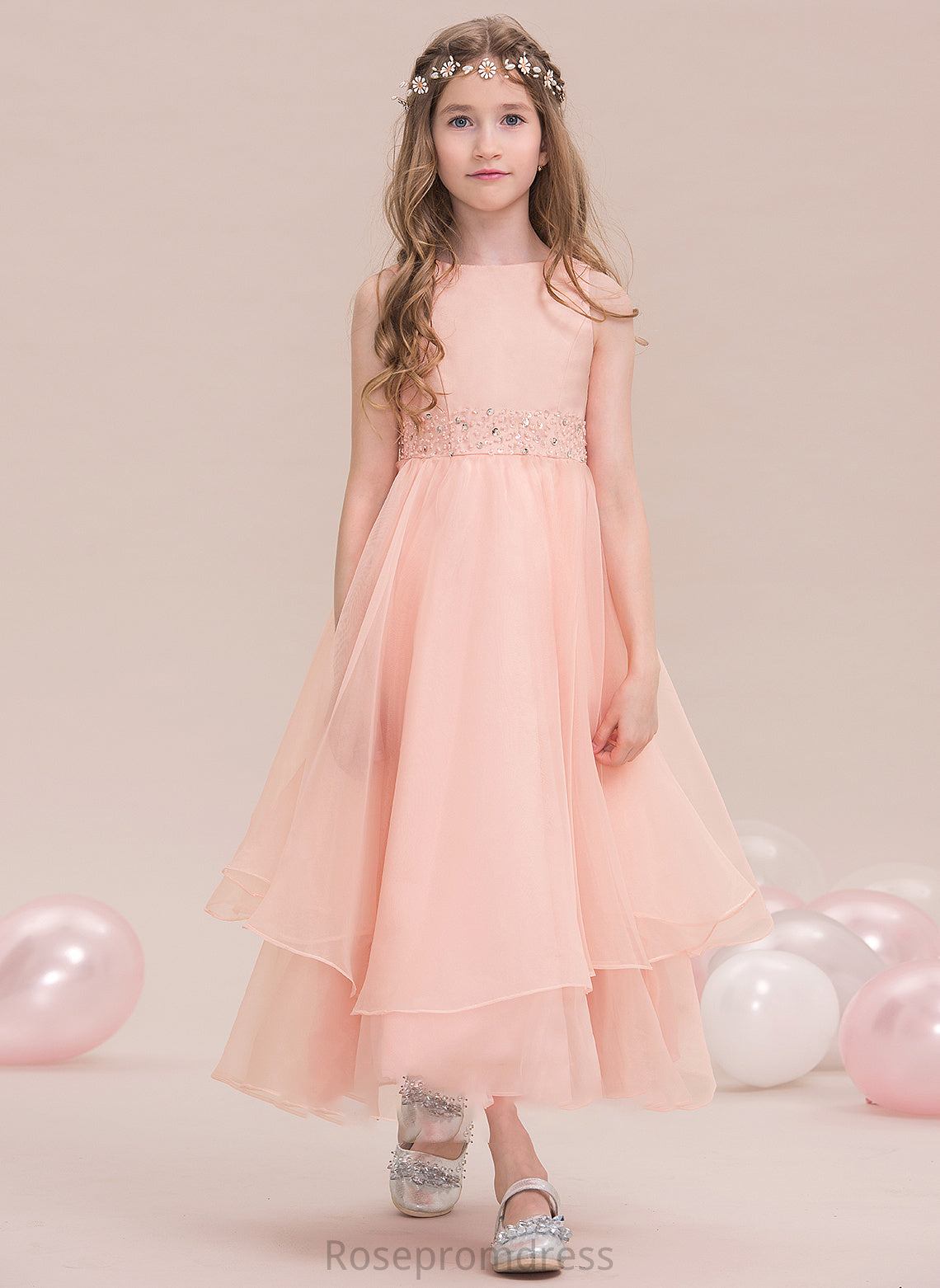 With Skye Junior Bridesmaid Dresses Beading A-Line Organza Ankle-Length Sequins Neck Scoop