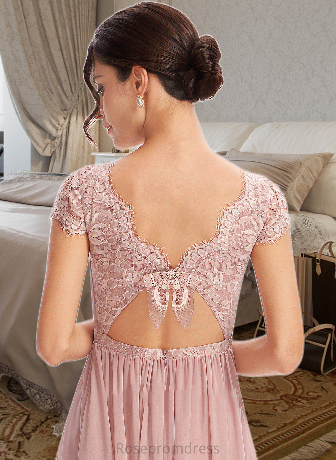 Yamilet A-Line V-neck Floor-Length Bridesmaid Dress With Lace SRSP0013071