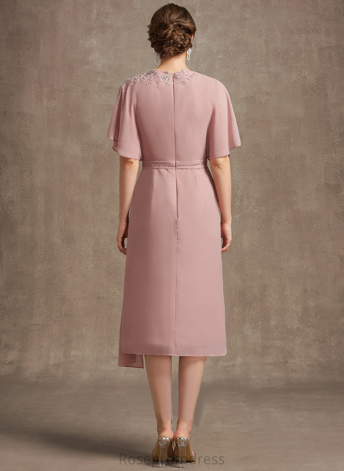 Yareli Bride Neck With Mother of the Bride Dresses Appliques Scoop Sheath/Column Lace Knee-Length Chiffon Mother the Dress of