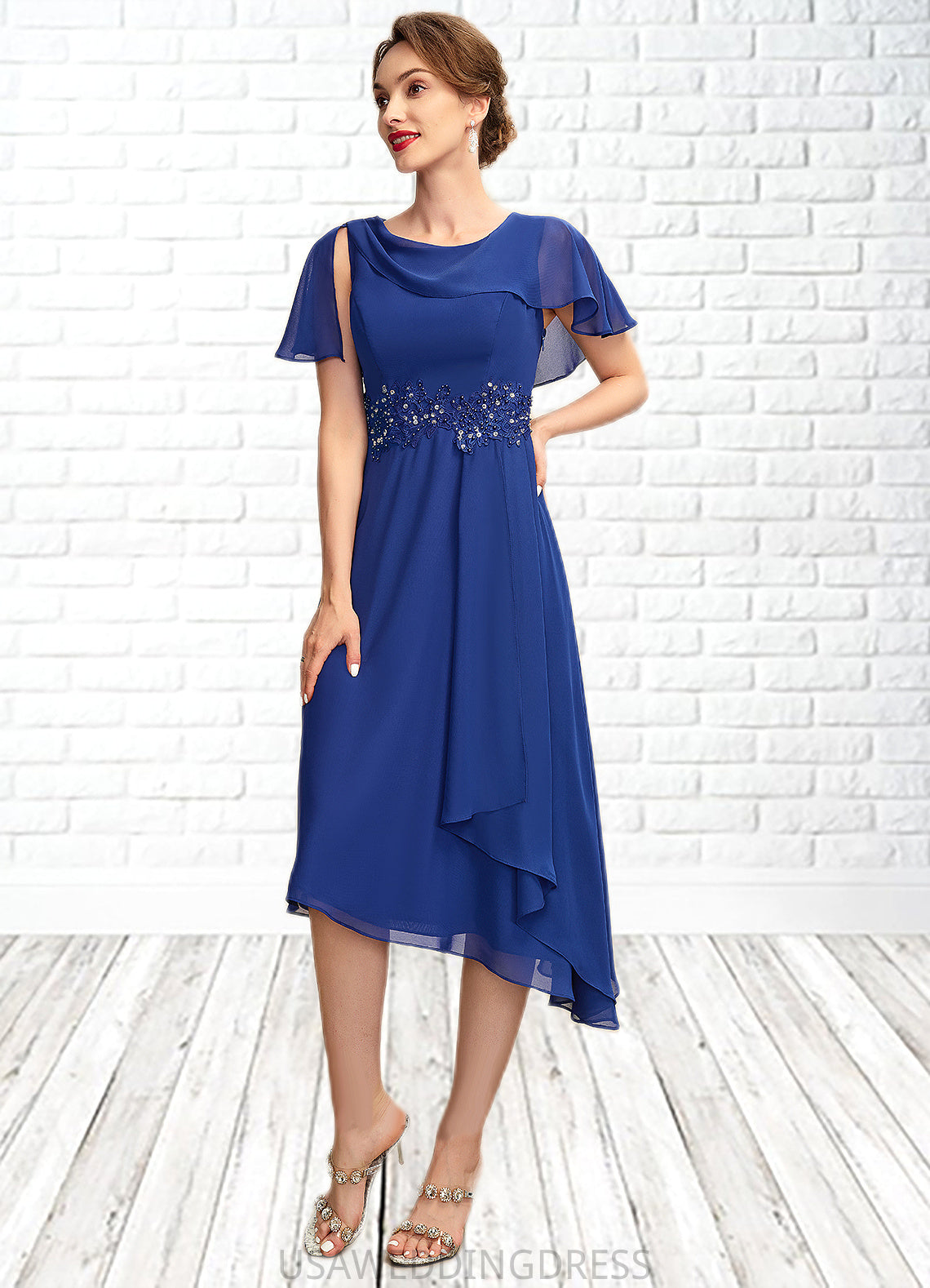 Yaretzi A-Line Scoop Neck Asymmetrical Chiffon Mother of the Bride Dress With Beading Appliques Lace Cascading Ruffles DS126P0014998