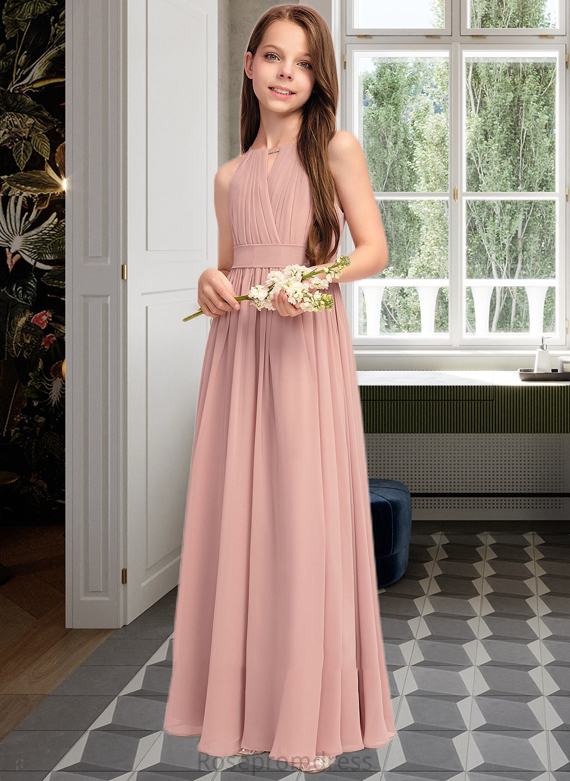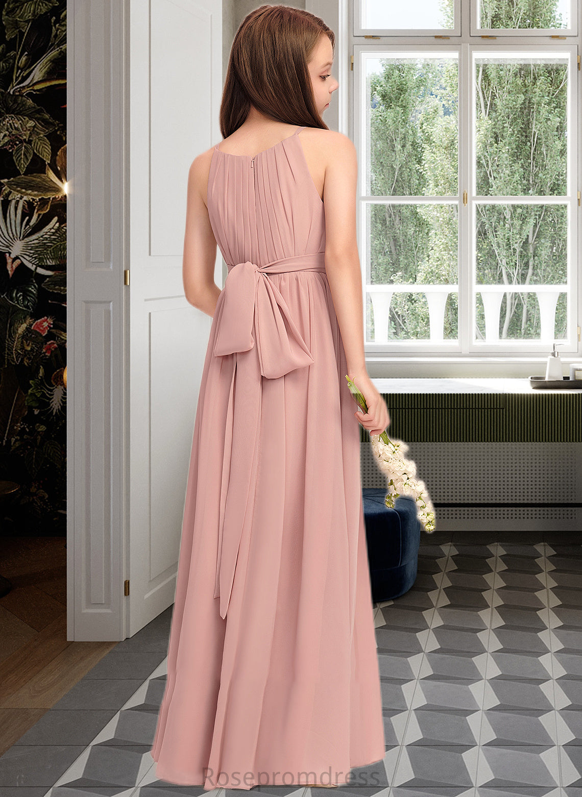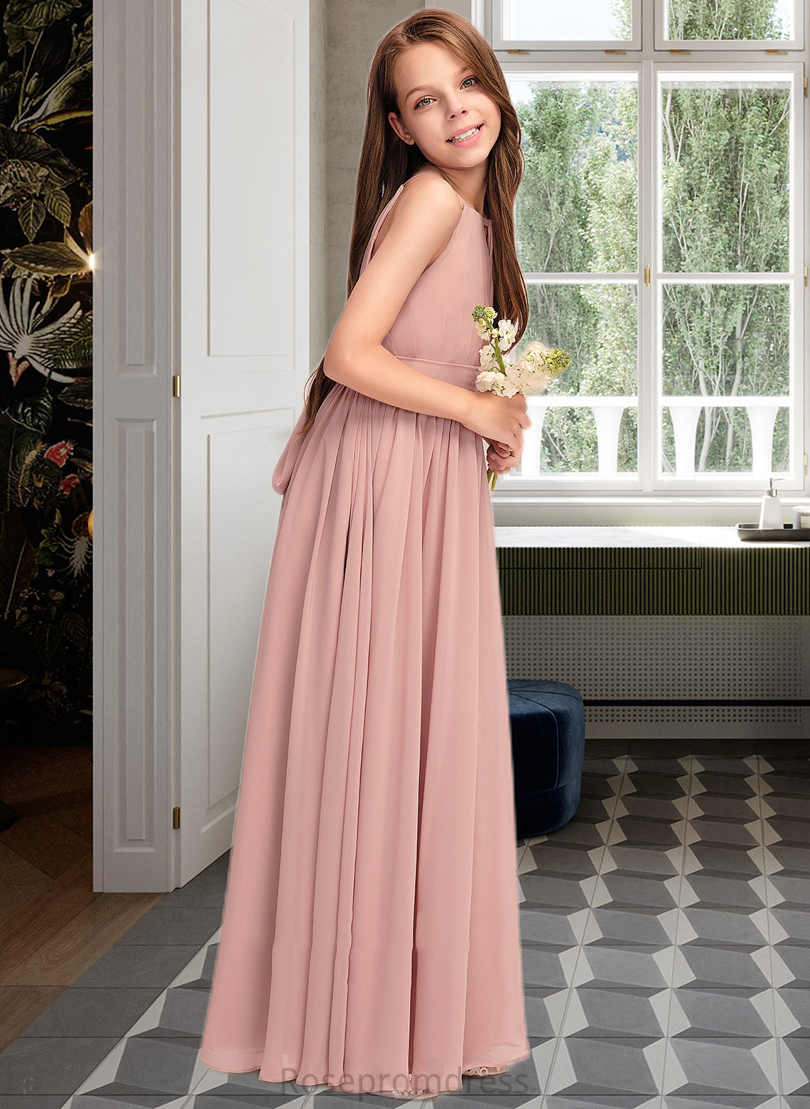 Yasmin A-Line Scoop Neck Floor-Length Chiffon Junior Bridesmaid Dress With Ruffle Bow(s) SRSP0013380