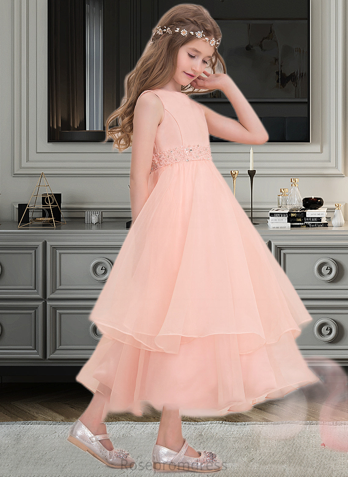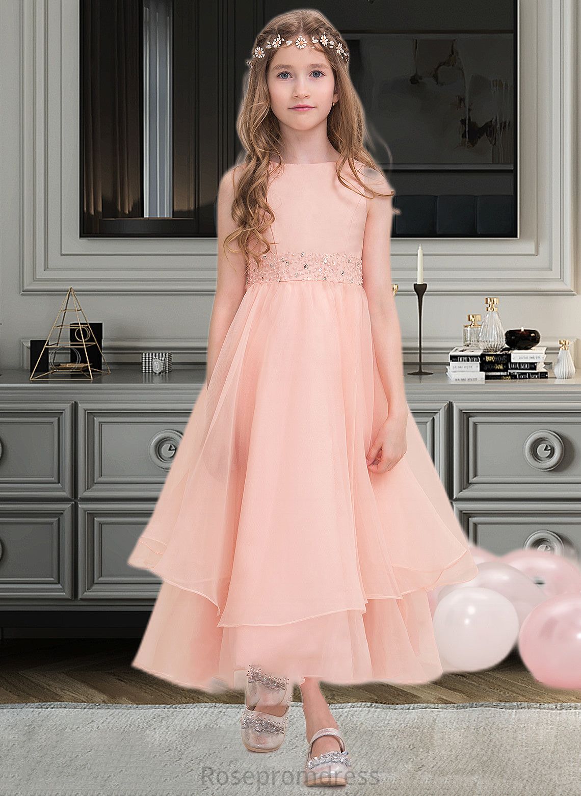Yazmin A-Line Scoop Neck Ankle-Length Organza Junior Bridesmaid Dress With Beading Sequins SRSP0013633