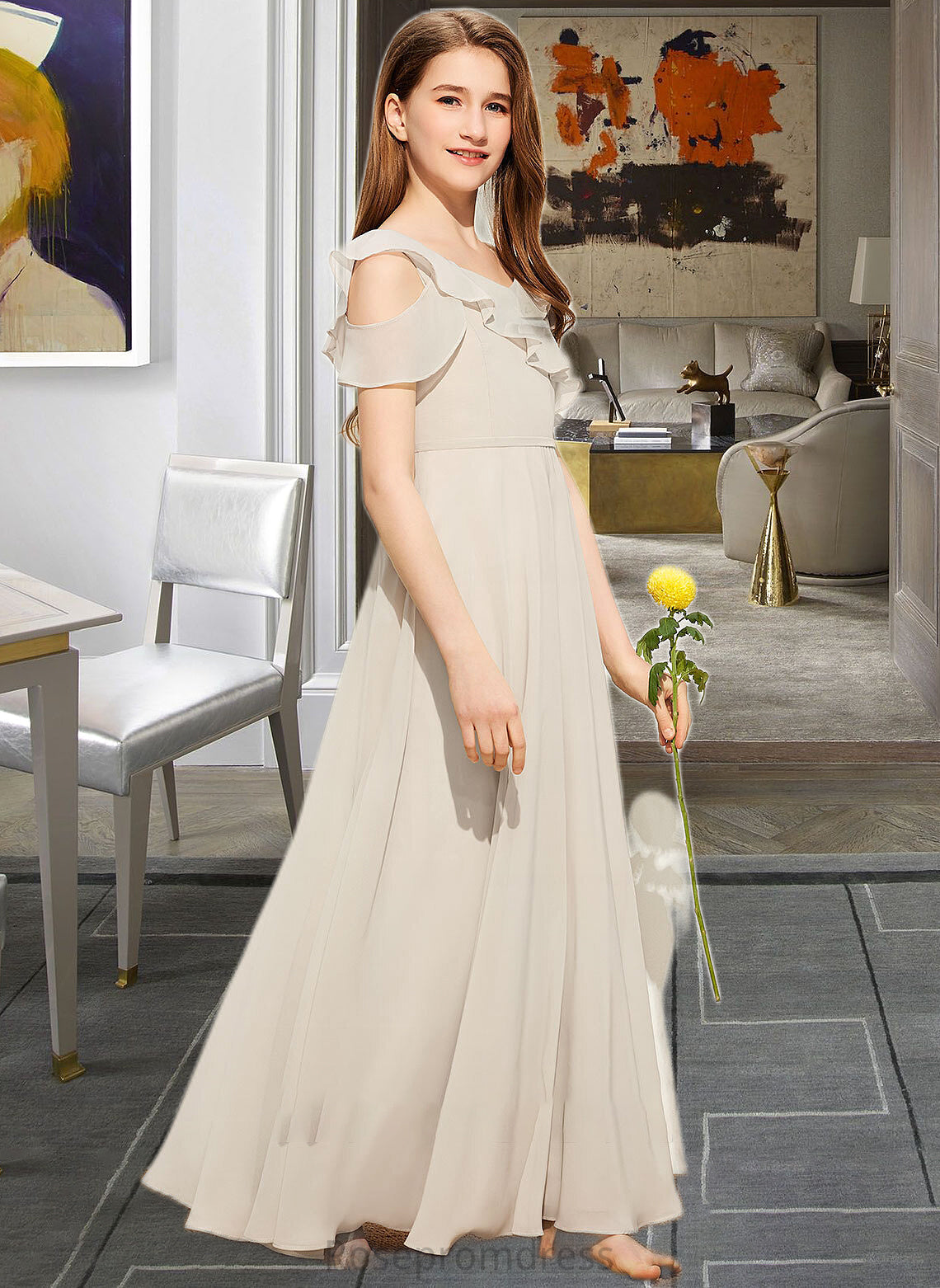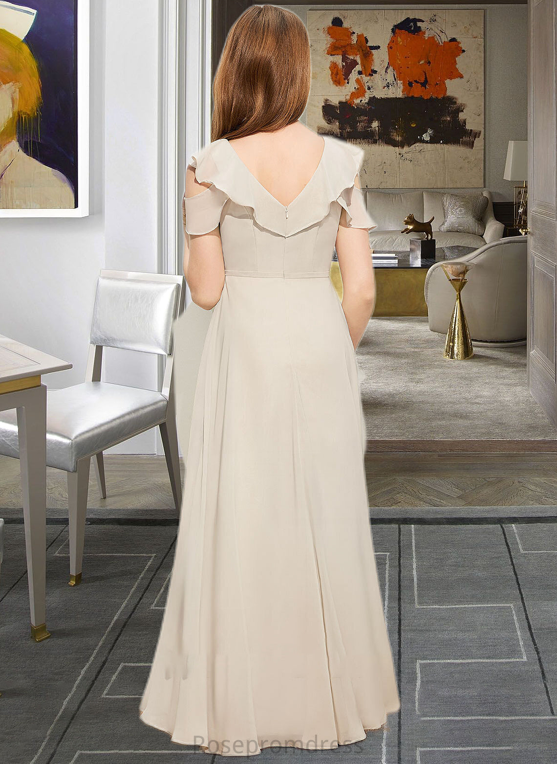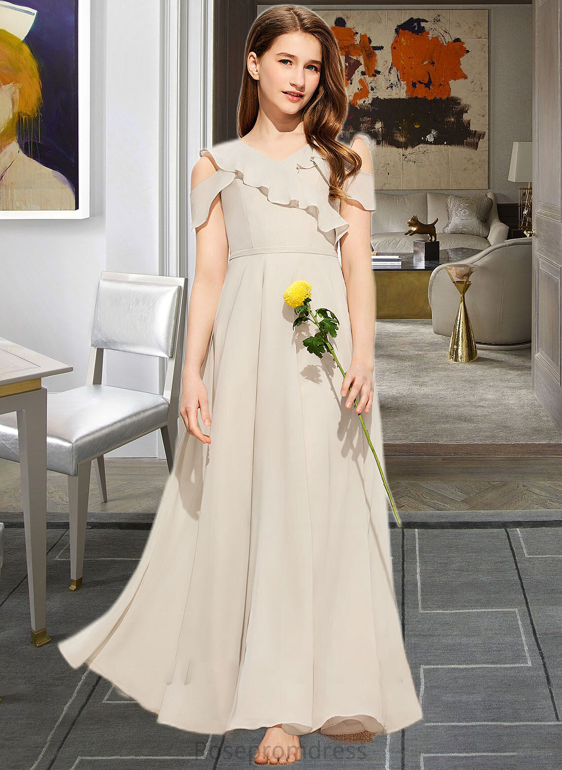 Zoie A-Line V-neck Floor-Length Chiffon Junior Bridesmaid Dress With Cascading Ruffles SRSP0013603